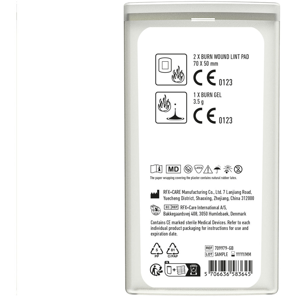 Met de Minikit Brandwonden ben je altijd voorbereid om eerste hulp te verlenen bij kleine brandwonden. Inhoud: 2 Brandwondencompres, 1 Brandwondengel. Alle eerste hulp en verzorgingsartikelen in de kit voldoen aan de EU regelgeving. Prijs is inclusief full colour bedrukking.