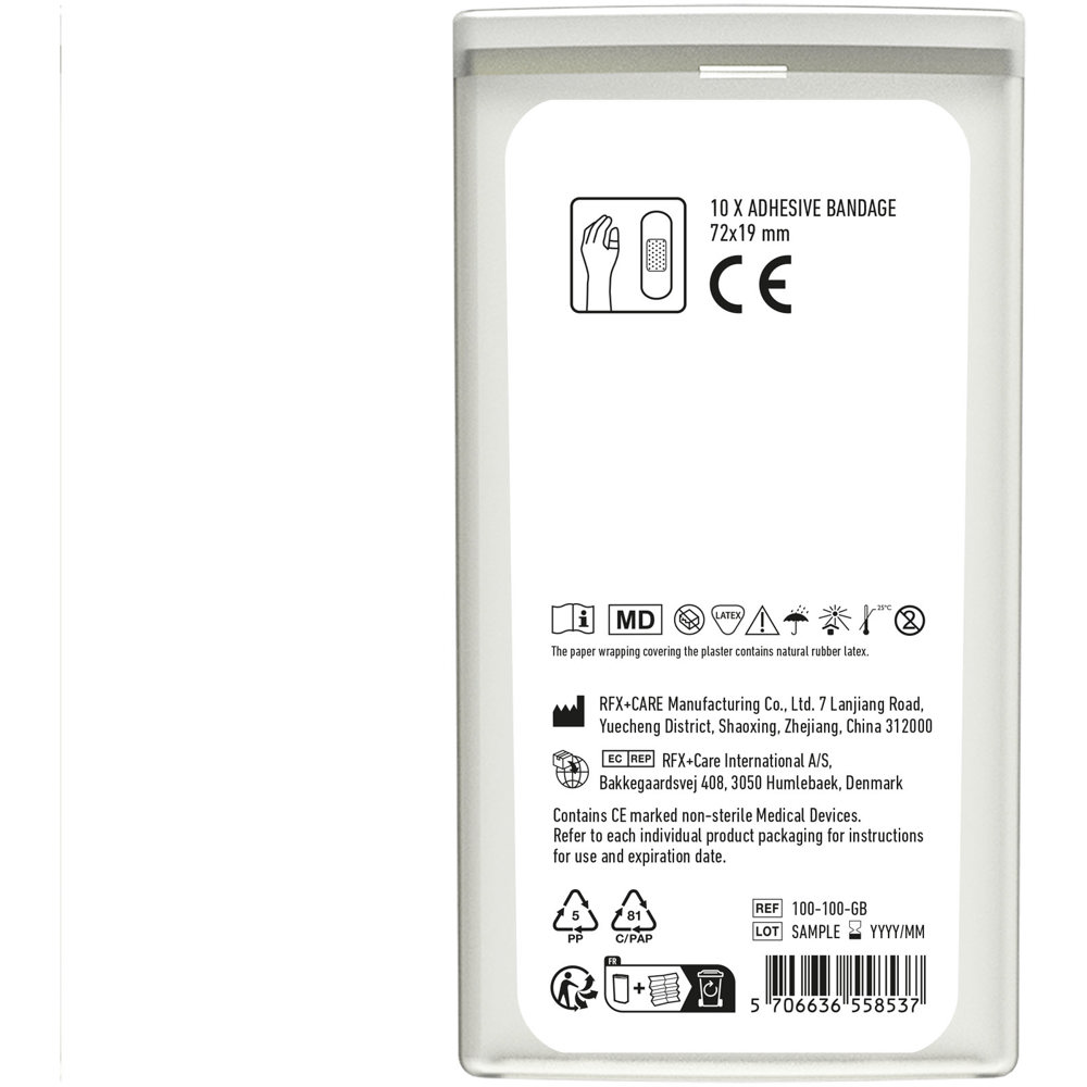 Met de Minikit pleister set heeft u altijd een pleister bij de hand. Deze handige kit is ideaal om in een tas of in het handschoenenkasje te stoppen. Met het opvallend gekleurd doosje en full colour bedrukt label op alle zijden is deze promotionele give-away een ideaal geschenk die blijft plakken. Inhoud: 10 waterbestendige pleisters. Alle eerste hulp en verzorgingsartikelen in de kit voldoen aan de EU regelgeving. Prijs is inclusief full colour bedrukking.