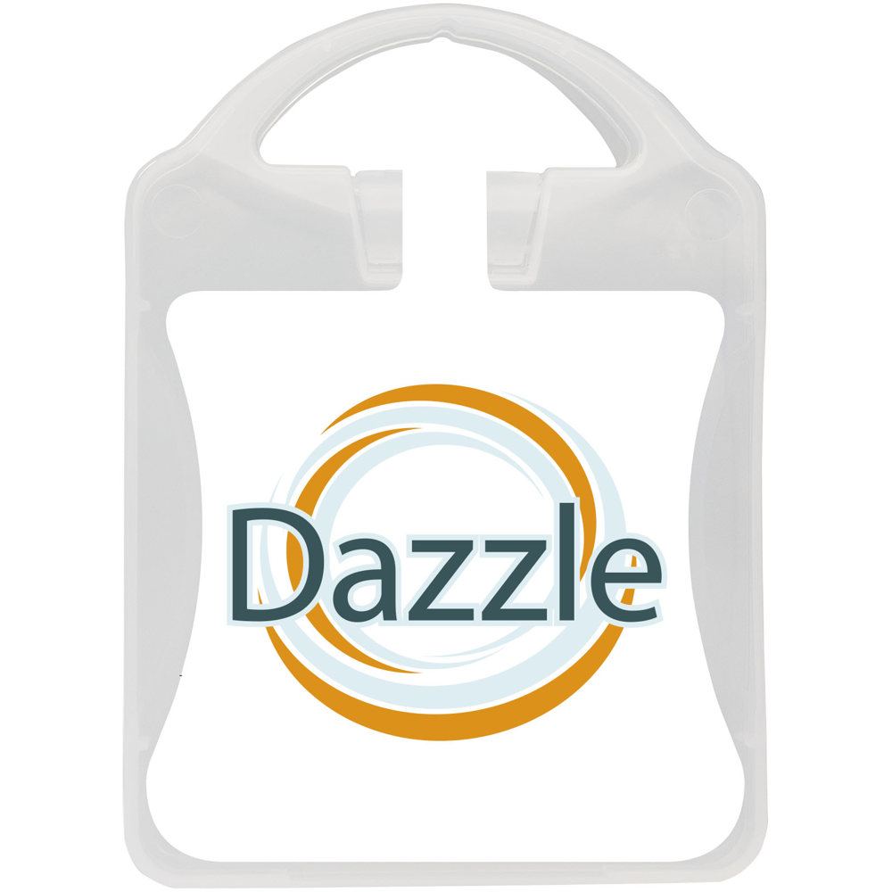 Met de uitgebreide Medium Kit uit de collectie van Mykit bent u echt voorbereid. Deze eerste hulp set biedt geeft echte hulp waar het nodig is. Inhoud: 1 Eerste hulp instructieboekje, 1 Blarenpleister, 12 Waterbestendige pleisters, 1 Metalen Pincet, 1 Mini schaartje , 1 Driehoekig verband , 1 Set van wegwerp handschoenen , 2 Wondkompressen, 1 Steriele Wondkompressen, 2 Droge reinigingsdoekjes, 4 Vochtige reinigingsdoekjes, 1 kiss of life. Alle eerste hulp en verzorgingsartikelen in de kit voldoen aan de EU regelgeving. Prijs is incl. Full colour opdruk. Neem contact met ons op indien u het label aan de voor- en achterzijde naar eigen ontwerp opgemaakt wilt hebben.