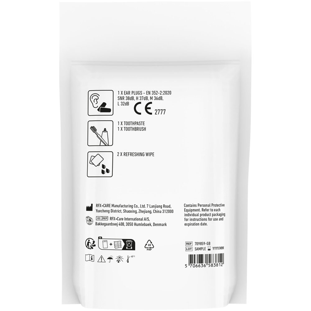 Ga goed voorbereid op vakantie met deze Minikit aan boord. Een onmisbaar accesoire om altijd bij u te hebben tijdens iedere reis. Inhoud: 1 Tandenborstel, 1 Tandenpasta, 2 verfrissingsdoekjes, 1 paar Oordopjes. Alle eerste hulp en verzorgingsartikelen in de kit voldoen aan de EU regelgeving. Prijs is inclusief full colour bedrukking. Geleverd in een papieren stazak.