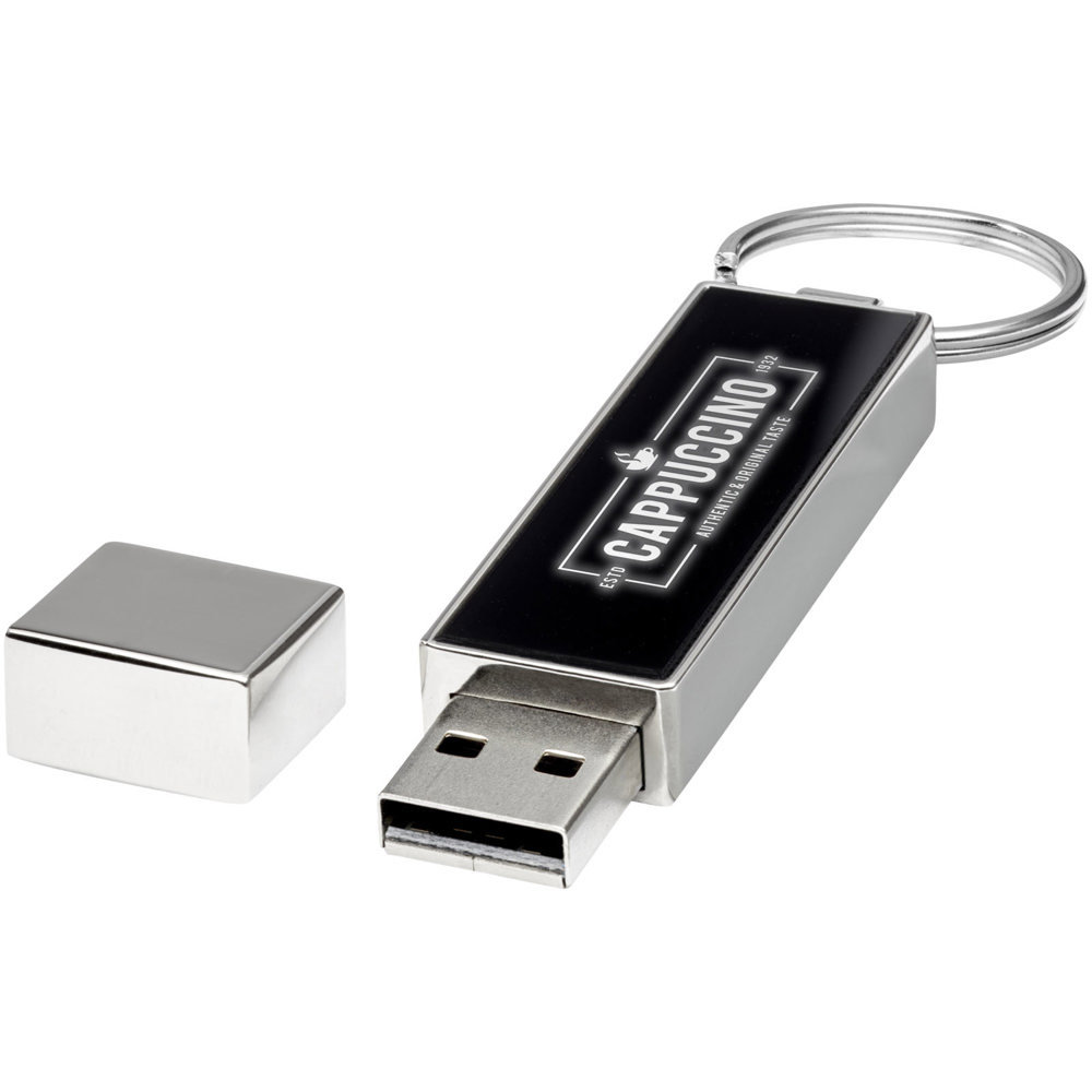 Rechthoekige USB met opvallend oplichtend logo effect (wit of blauw licht). Verkrijgbaar in 1GB tot 64GB.