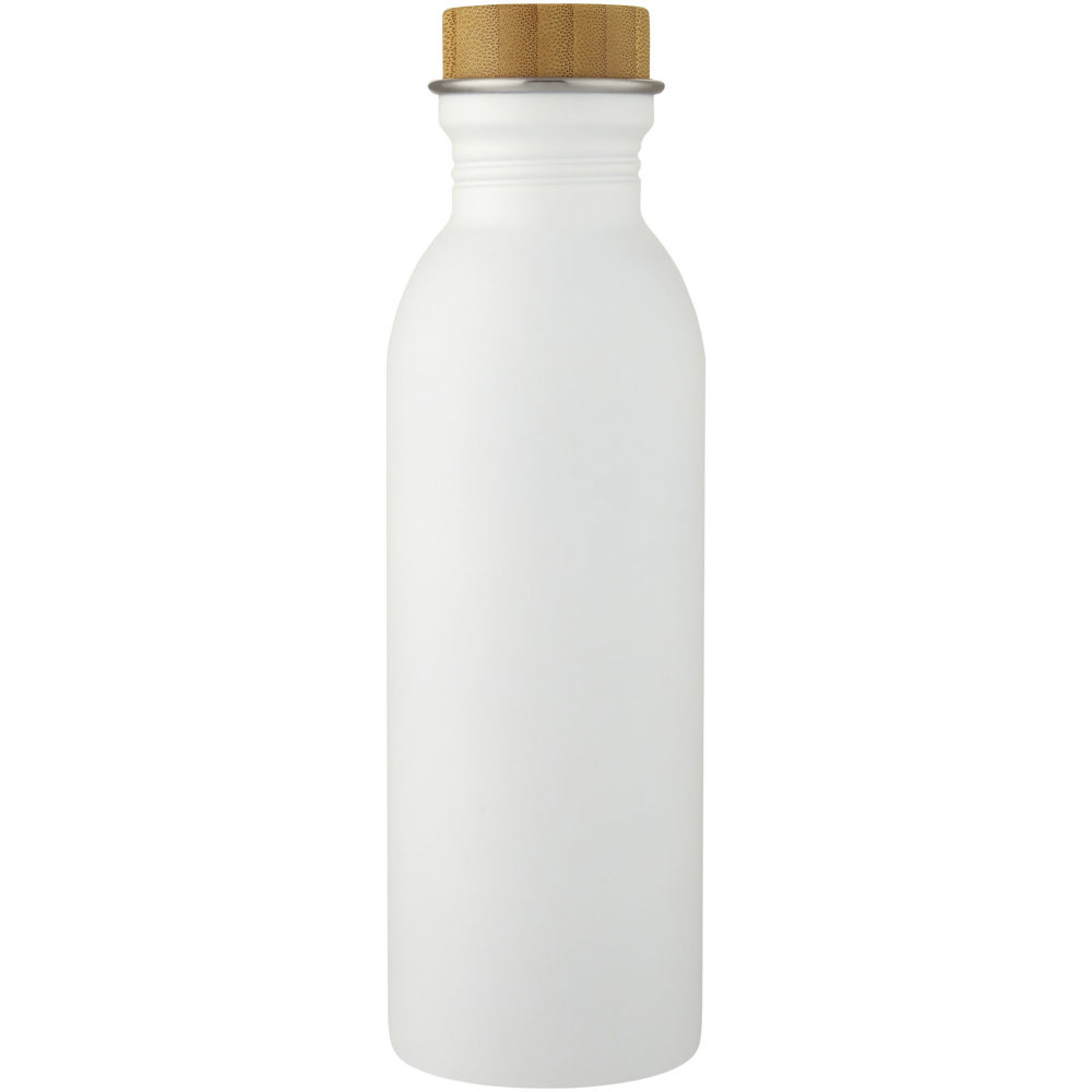 Enkelwandige 18/8 roestvrijstalen drinkfles met een bamboe deksel. BPA-vrij, getest en goedgekeurd volgens de Duitse voedselveiligheidswetgeving (LFGB). Getest en goedgekeurd voor ftalaten volgens de REACH-regelgeving. De gebruikte bamboe is van duurzame, milieuvriendelijke, maatschappelijk verantwoorde bronnen. Inhoud 650 ml Handwas aanbevolen. Geleverd in een gerecycled kartonnen geschenkverpakking.
