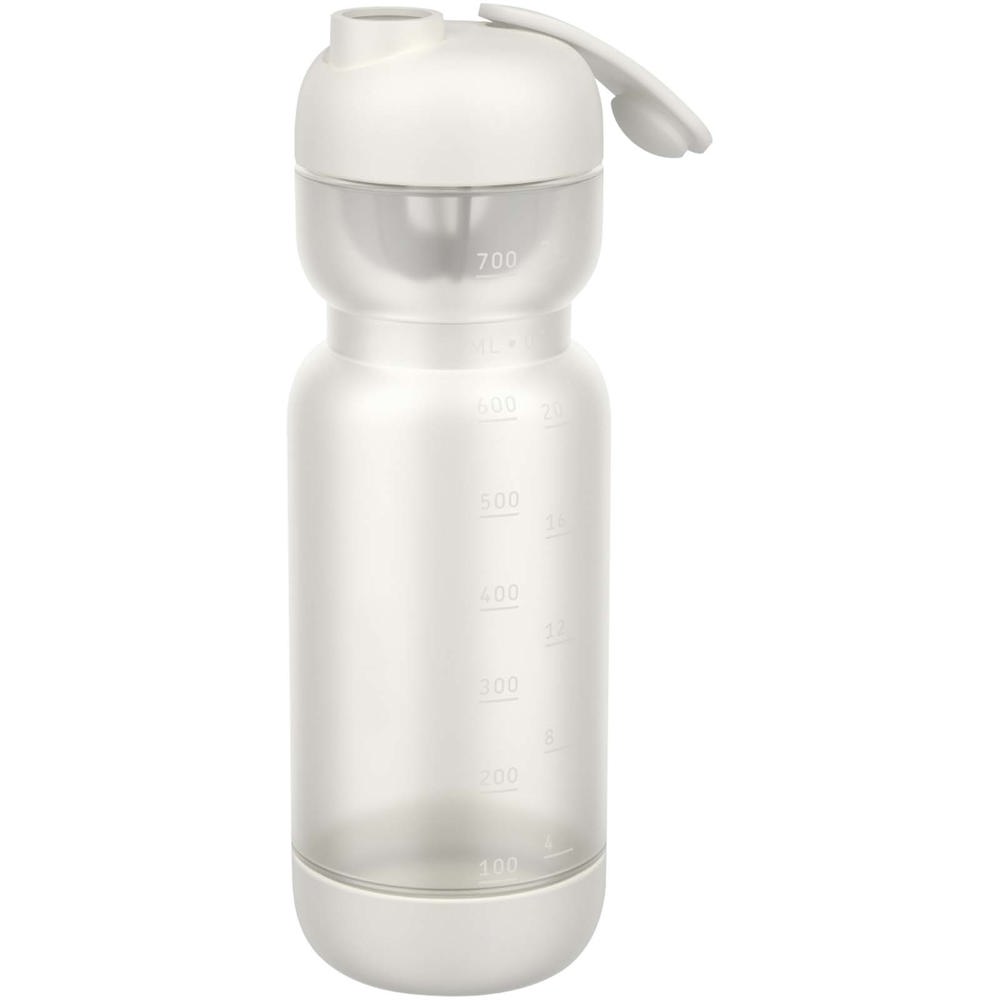 De Shaker 800 ml sportfles maakt klontvrije shakes moeiteloos. Met een ingebouwde mixer en een maataanduiding voor precies doseren, én een lekvrij deksel. Het onderste gedeelte is afneembaar, zodat je de fles makkelijk schoonmaakt. Perfect voor onderweg of in de sportschool.
