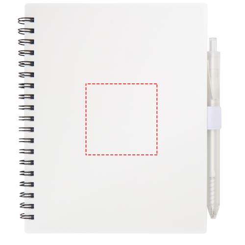 De omslag is te voorzien van jouw eigen ontwerp. Informeer bij ons naar de verdere mogelijkheden van dit uitwisbaar whiteboard notitieboek.