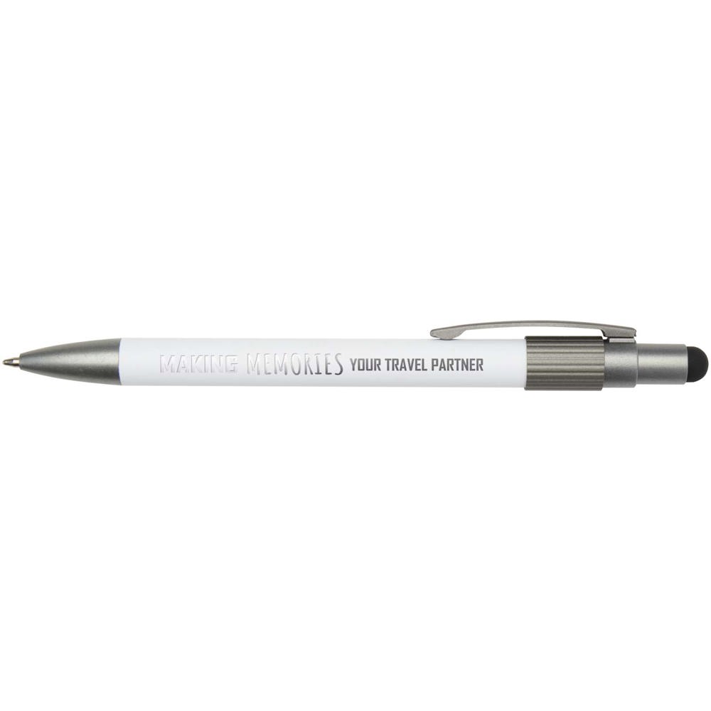 Balpen met stylus en fidget spinner — een combinatie van functionaliteit en speels design. De pen is gemaakt van RCS-gecertificeerd gerecycled aluminium, met een soepel drukmechanisme en stylus-tip voor gebruik op touchscreens. De ingebouwde fidget spinner bovenop zorgt voor een stressverlichtend effect (geactiveerd met een simpele tik). Inktkleur: zwart. Schrijflengte: 1000 meter.