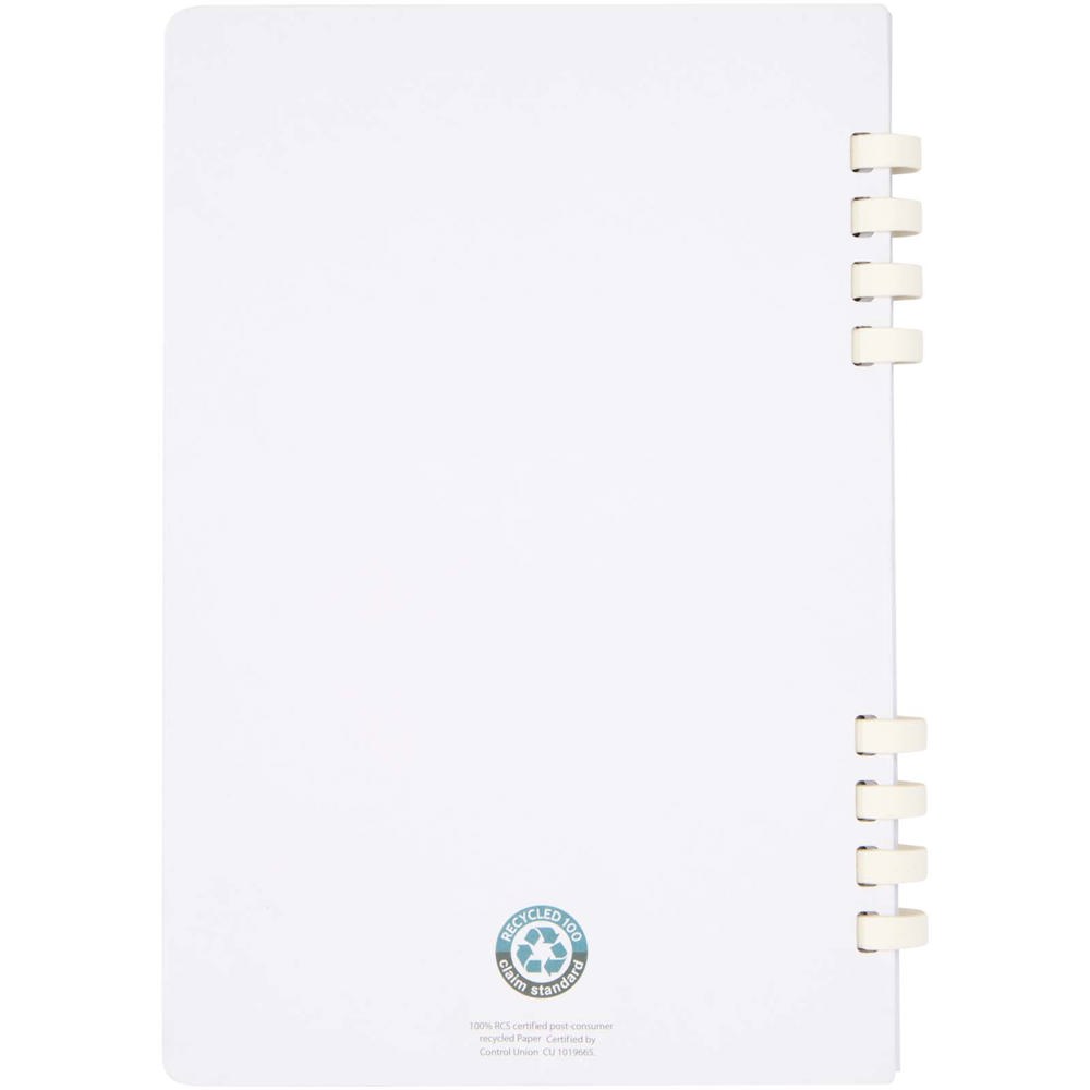 Het Fil A5 hardcover spiraalnotitieboek met 60 gelinieerde pagina’s is gemaakt van 70 g/m² RCS-gecertificeerd gerecycled papier. Volledig vervaardigd uit gerecyclede materialen is dit een praktische en milieuvriendelijke keuze, die bovendien eenvoudig te recyclen is na gebruik.