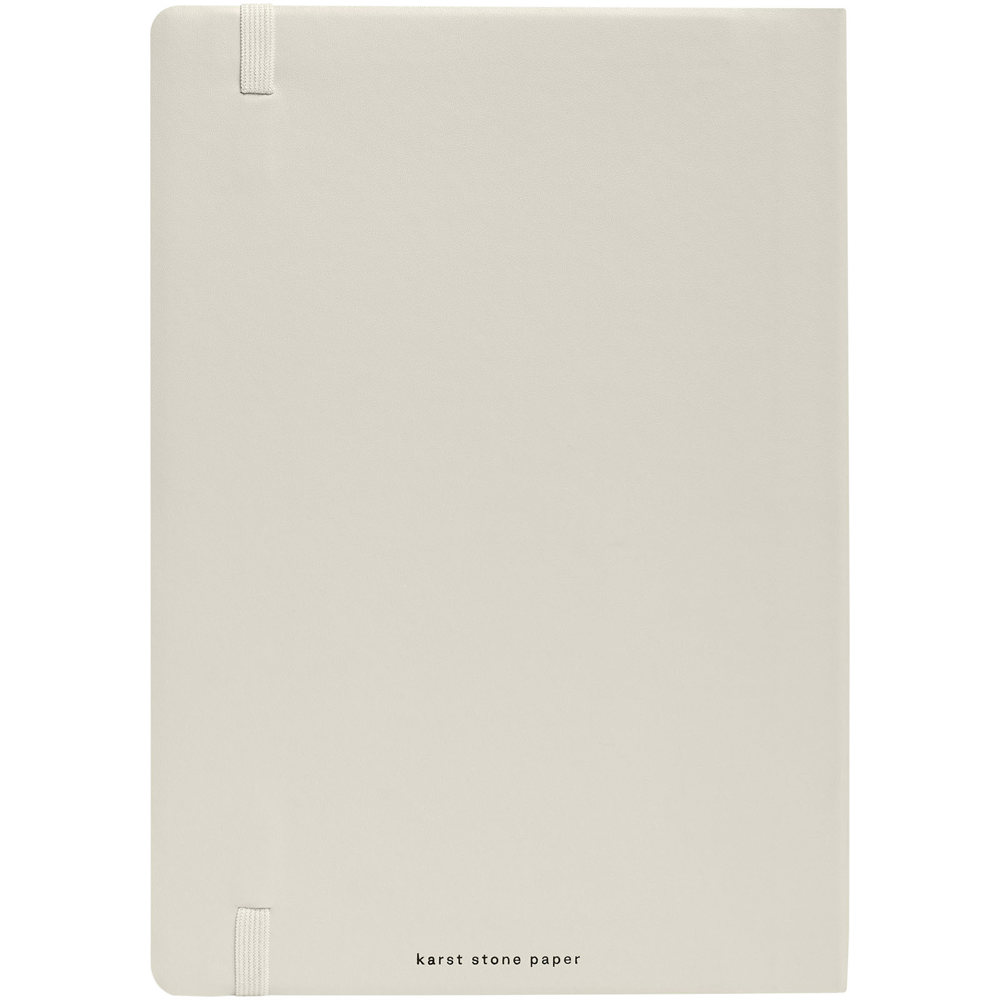 Het Karst® A5 notitieboek met softcover is het meest luxueuze notitieboek in de Karst®-collectie en heeft een duurzame en flexibele veganistische lederen cover. De waterdichte cover en pagina's zorgen ervoor dat het geen vocht absorbeert tijdens de overhaaste koffie in de vroege ochtend. Voorzien van een elastische band om het notitieboek dicht te houden, 144 waterbestendige, scheurvaste gelinieerde pagina's, een uitvouwbaar achtervak voor opbergruimte en een scheidingslint met hitteverzegelde punt en afgeronde hoeken.