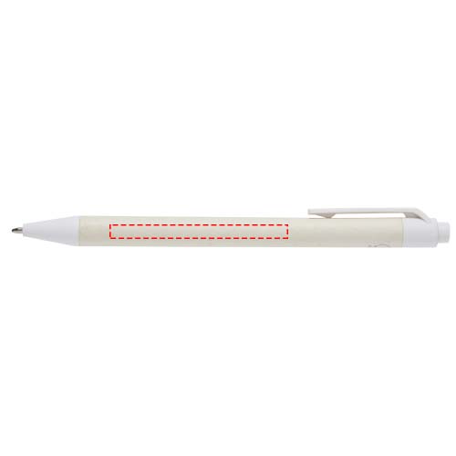 Balpen met klikmechanisme met een houder gemaakt van gerecyclede melkpakken (tot 70%). De knop, clip en punt zijn gemaakt van PLA kunststof. Gebruikte melkpakken worden ingezameld, gesorteerd, verwerkt en omgezet in papier, waardoor afval echt iets nuttigs wordt.