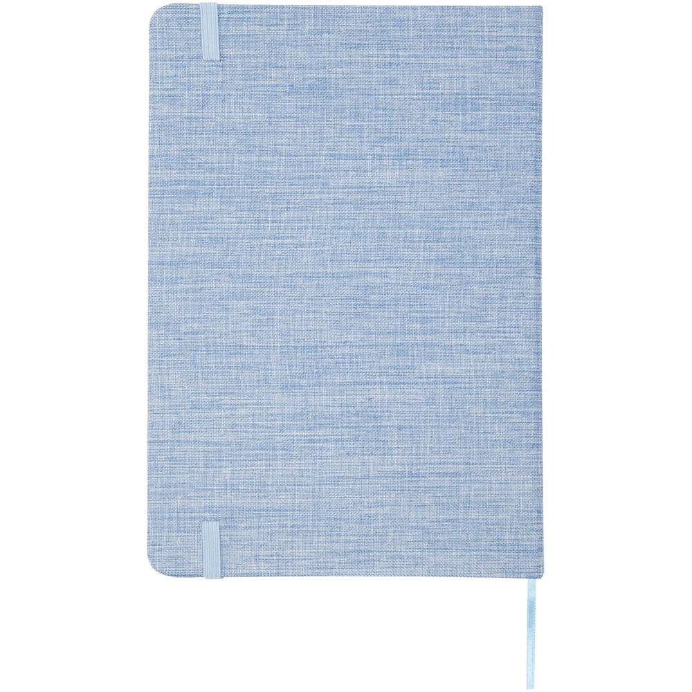 A5 notitieboek met harde kaft van gerecycled katoen met 80 gelinieerde vellen papier van 70 g/m². Het notitieboek heeft een elastische sluiting, een lint en afgeronde hoeken.