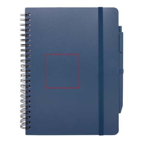 Het Thalaasa A5 notitieboek met harde kaft is gemaakt van ocean-bound plastic en heeft 80 gelinieerde vellen crèmekleurig papier van 70 g/m². Het notitieboek heeft afgeronde hoeken, een elastische sluiting en een pennenlus. De balpen met zwarte inkt is ook gemaakt van gerecycled plastic uit de oceaan. Schrijflengte: 1000 meter. Stiftmaat: 1,0 mm.