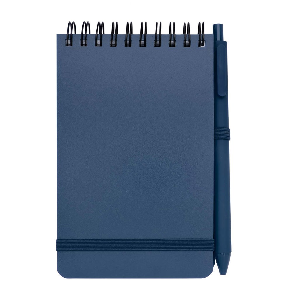Het Thalaasa A6 notitieboek met harde kaft is gemaakt van ocean-bound plastic en heeft 80 gelinieerde vellen crèmekleurig papier van 70 g/m². Het notitieboek heeft afgeronde hoeken, een elastische sluiting en een pennenlus. De balpen met zwarte inkt is ook gemaakt van gerecycled plastic uit de oceaan. Schrijflengte: 1000 meter. Stiftmaat: 1,0 mm.