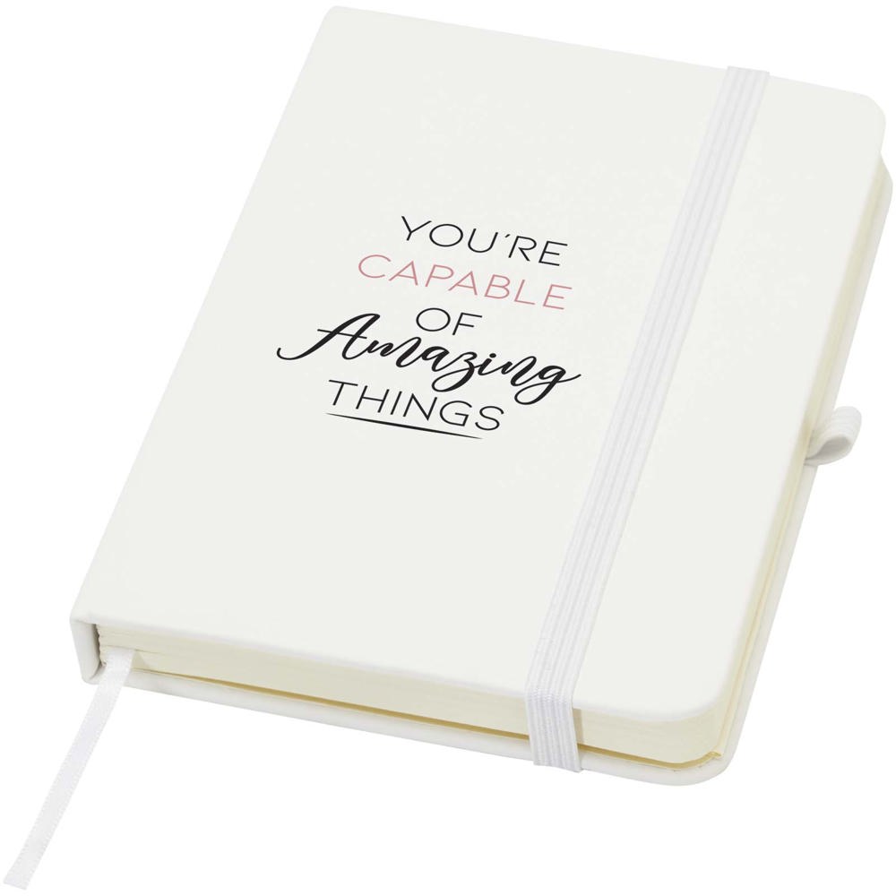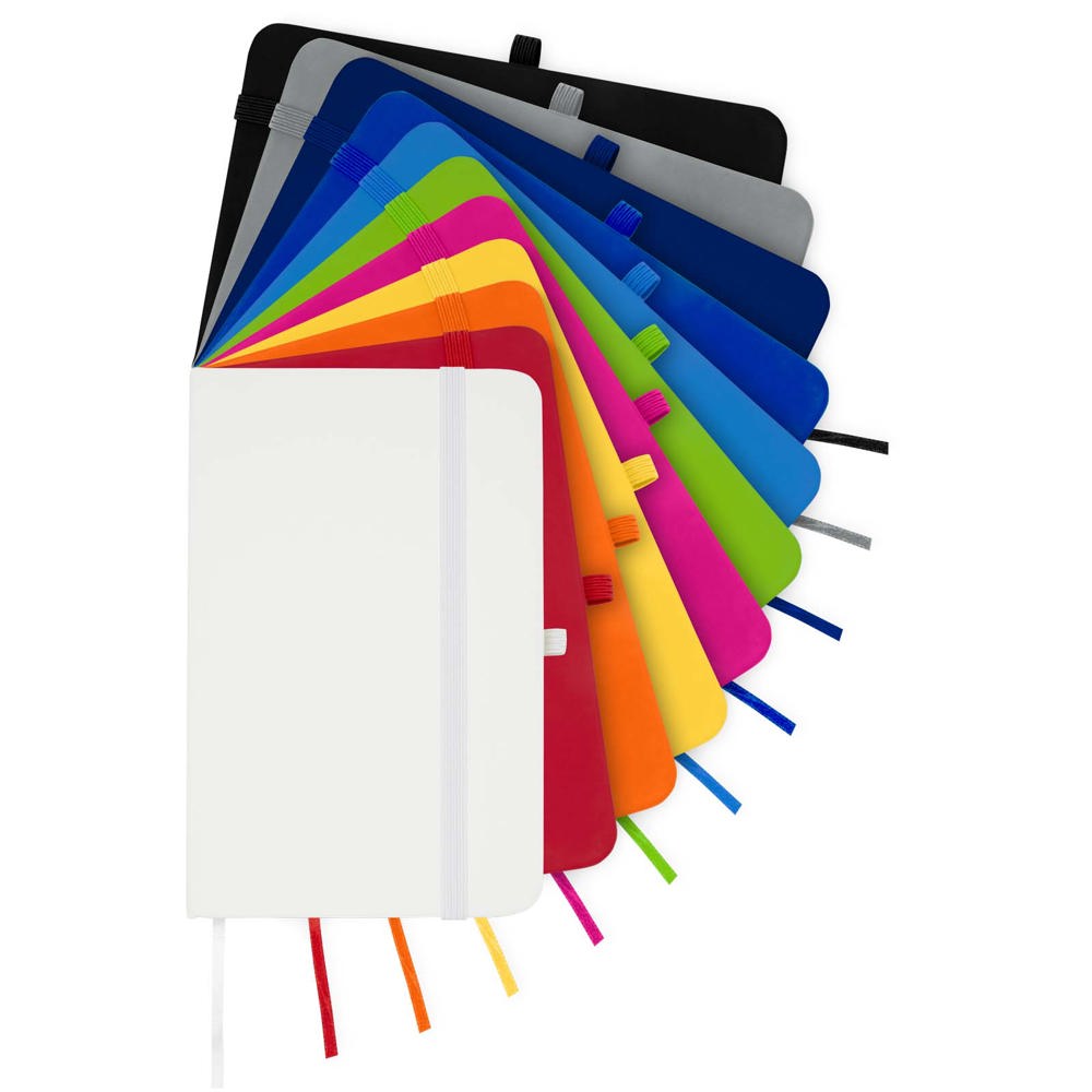 Het Spectrum Plus A6 notitieboek met harde kaft en afgeronde hoeken is niet alleen onmisbaar op kantoor, maar ook een geweldige kans om je merk te promoten. Het kartonnen notitieboek heeft een zacht aanvoelende kaft en 80 gelinieerde crèmekleurige vellen van 70 g/m², ideaal voor het opschrijven van snelle ideeën of lange notities. Het notitieboek heeft een pennenlus, elastische sluiting, lintmarkering en accordeonvak.