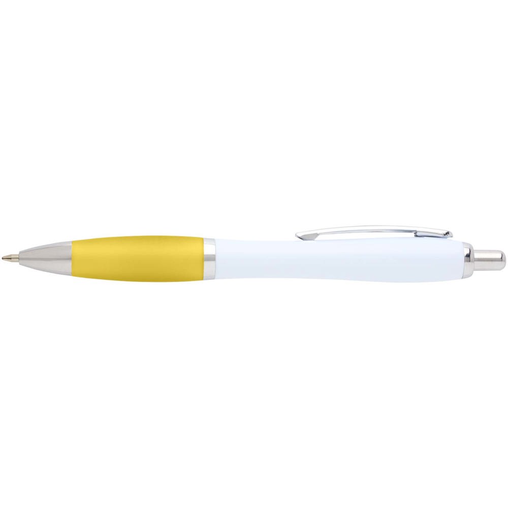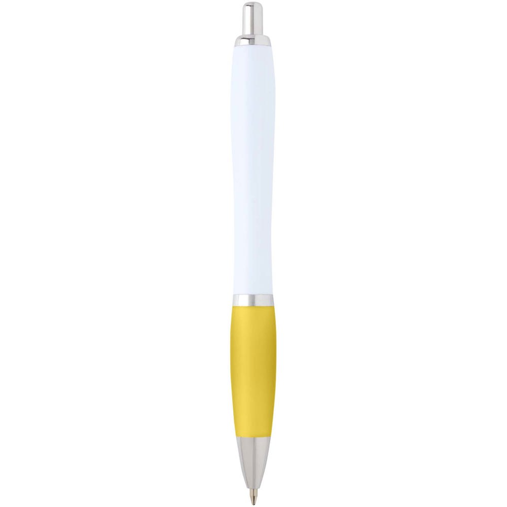 De Nash balpen met een stijlvol gebogen ontwerp en een zachte grip is gemaakt van gerecycled plastic dat hard en stevig is en dus een lange levensduur heeft. Inktkleur: zwart. Schrijflengte: 1000 meter. Stiftmaat: 1,00 mm.
