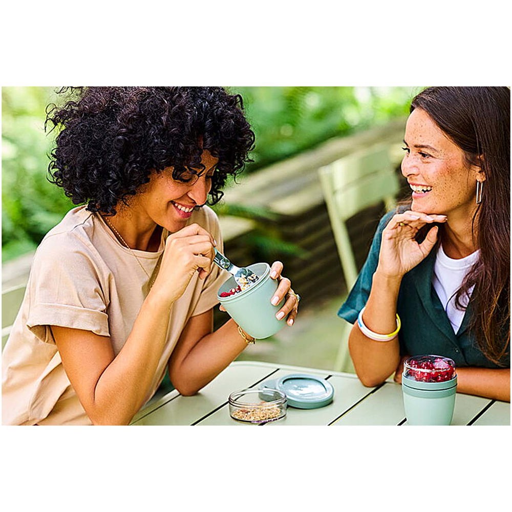 De Ellipse Mini-lunchpot is ideaal voor verschillende snacks, zoals yoghurt met muesli of soep met croutons. Dankzij de twee slimme compartimenten in één stevige container blijven je ingrediënten netjes gescheiden. Door het compacte formaat past hij gemakkelijk in je schooltas voor een snelle en handige maaltijd. Het bovenste transparante bakje heeft een inhoud van 120 ml, perfect voor zo’n 50 gram muesli of fruit, en het onderste bakje biedt 300 ml ruimte. Lekvrij, vaatwasmachinebestendig en volledig BPA-vrij.