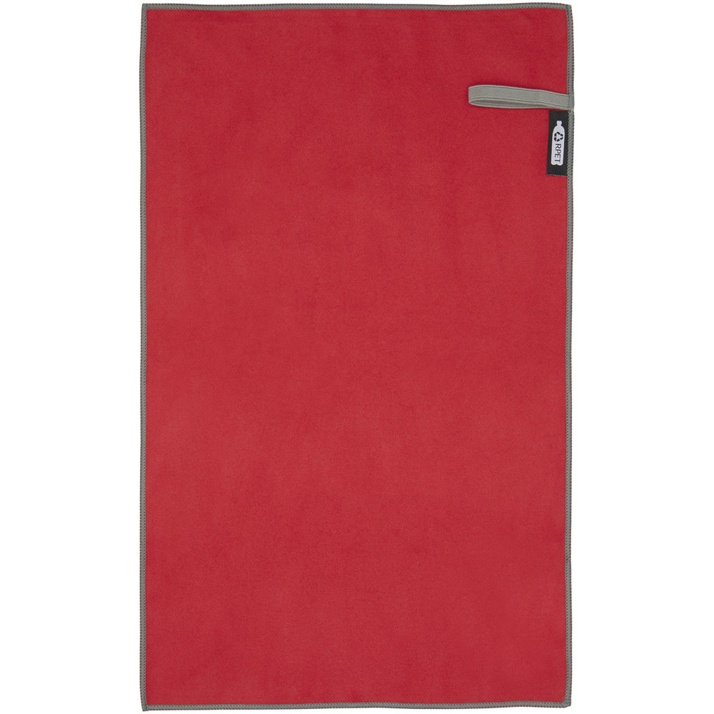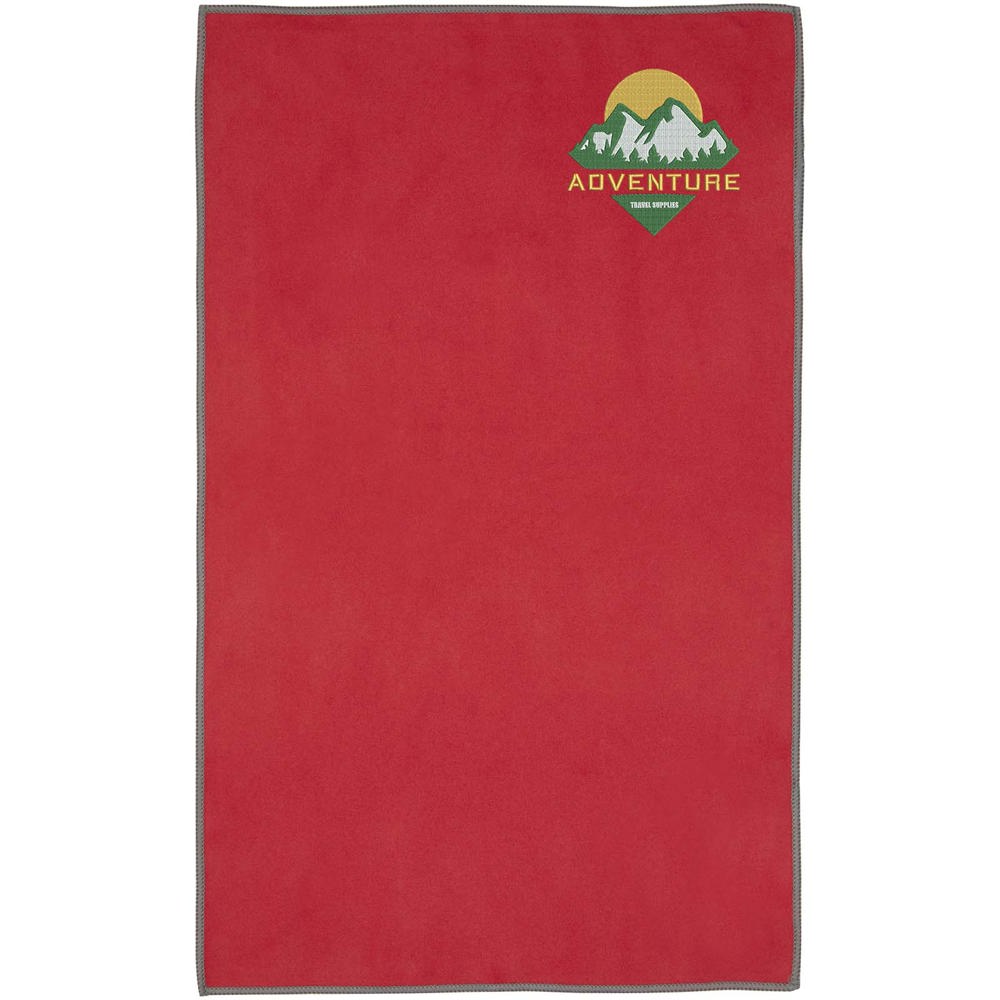 De Pieter sporthanddoek absorbeert zeer goed, is licht, droogt snel en de stof is duurzaam en extreem zacht. Wanneer de handdoek is opgevouwen en vastgezet met de elastische band, is deze zeer compact, waardoor hij geschikt is om mee te nemen naar de sportschool, het zwembad of voor tijdens het backpacken of kamperen. De handdoek heeft een afmeting van 50 x 30 cm en is gemaakt van 90% GRS gerecycled polyester en 10% nylon en kan in de wasmachine gewassen worden op 40 °C. Geleverd met een opbergzakje (15,5 x 10 cm) gemaakt van gerecycled PET-plastic, dat een groot oppervlak biedt voor het afdrukken van een logo.