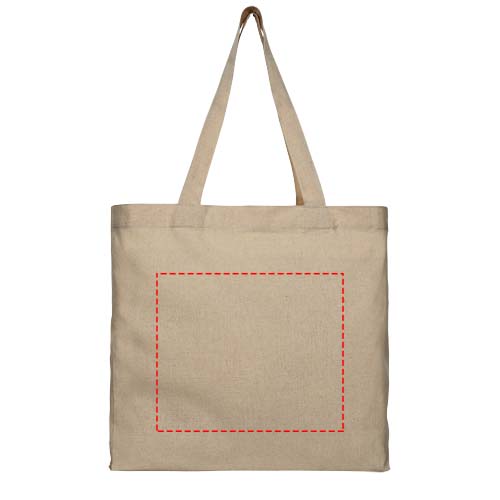 Draagtas gemaakt van 210 g/m² gerecycled katoen polyester mix. Gerecycled katoen wordt vervaardigd uit voor consumenten bestemd afval dat in textielfabrieken tijdens het snijproces wordt geproduceerd. Draagtas met een groot hoofdvak. Voorzien van twee handgrepen met een lengte van 31 cm. Door de aard van het productieproces kunnen er kleine variaties zijn in de kleur van het daadwerkelijke product. Geschikt voor een gewicht tot 10 kg. Door de aard van het productieproces kunnen er kleine variaties zijn in de kleur van het daadwerkelijke product.
