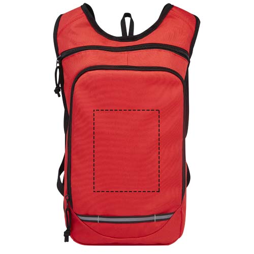 De rugzak van Trails is gemaakt van een 100% GRS gerecyclede en waterafstotende stof, heeft een voorvak met rits en een hoofdvak met rits, en is compatibel met een waterzak. Reflecterende strepen voor zichtbaarheid en mesh achterkant voor draagcomfort, waardoor het een geweldige duurzame keuze is voor buitenactiviteiten.