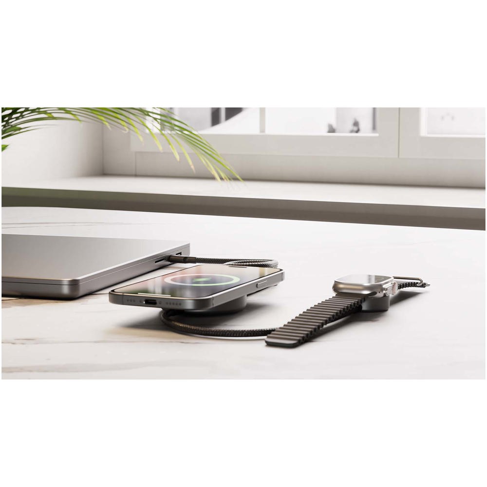 Laad je iPhone (12 of later) en Apple Watch tegelijkertijd op met de Zens Pro 2, die beschikt over Qi2-gecertificeerd snel draadloos opladen tot 15 W. Dankzij de magnetische uitlijning klikt je telefoon stevig vast, zodat hij elke keer weer efficiënt en betrouwbaar oplaadt, ook als je een compatibele Android-telefoon met een magnetisch hoesje gebruikt. Met de ingebouwde Apple Watch-module kun je beide apparaten tegelijkertijd opladen, waar je ook bent: thuis, op kantoor of onderweg. Compact, met USB-C-voeding en klaar voor onderweg: ideaal voor zakenreizen, thuiswerken of dagelijks gebruik op je bureau.