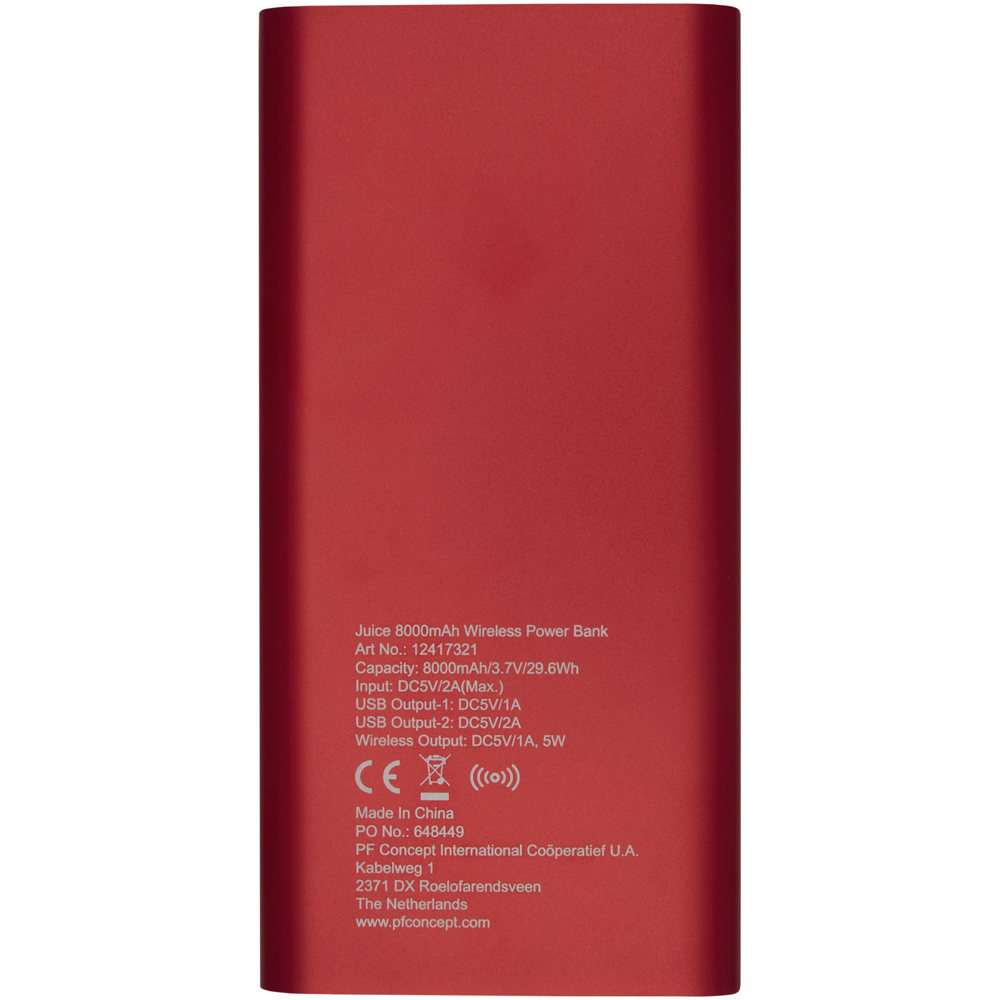 8000 mAh powerbank met aluminium behuizing. Ondersteunt 5 W draadloos opladen en wordt ook geleverd met Micro USB-uitgang om te kunnen opladen met een kabel. Met de lithiumpolymeerbatterij van 8000 mAh kan hij een smartphone meerdere keren volledig opladen. Powerindicator die te allen tijde het energieniveau weergeeft. Micro USB-ingang: 5 V/2 A-uitgang: 5 V/2A. Draadloze uitgang 5 W. Inclusief PVC-vrije TPE kunststof oplaadkabel. Geleverd in een standaardgeschenkverpakking.