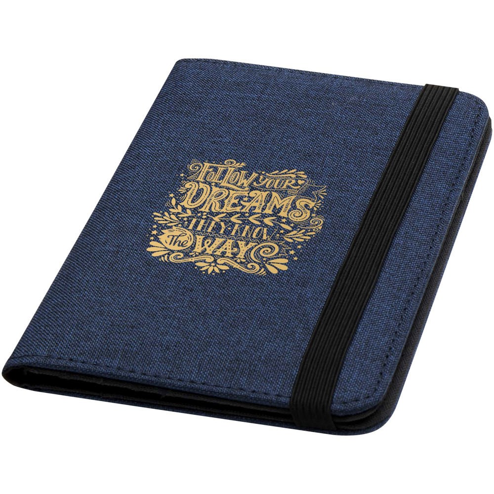 De Ross RFID-paspoorthouder is gemaakt van gerecycled polyester en is ideaal voor mensen die voortdurend onderweg zijn, met speciale vakjes voor paspoort, tickets, creditcards en andere items. Wordt geleverd met een elastische bandsluiting om de inhoud veilig en beschermd te houden.