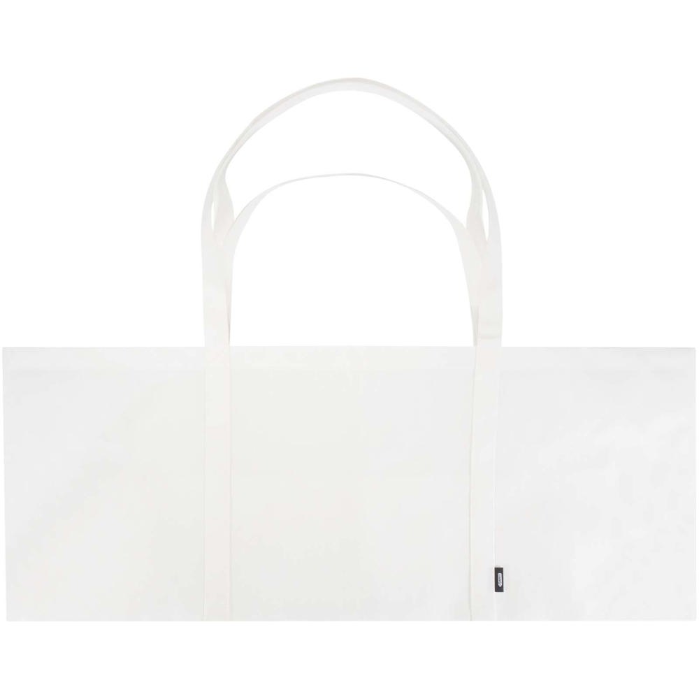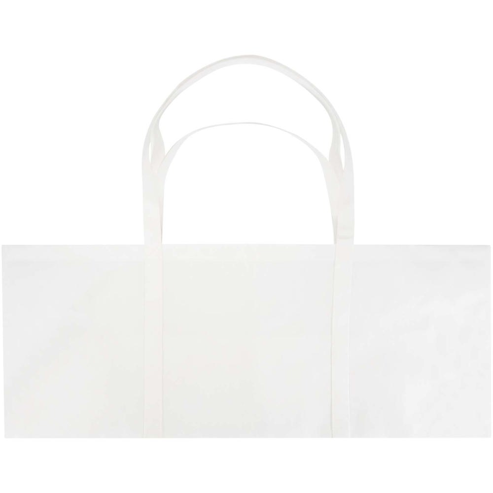 De Jumbo GRS gecertificeerde gerecyclede tas is gemaakt van duurzaam en scheurbestendig non woven RPET en biedt een extra grote capaciteit van maximaal 65 liter voor verschillende activiteiten, zoals grote boodschappen of een dagje strand of park. Met versterkte korte handgrepen (24 cm) en lange handgrepen (37 cm) voor maximaal draagcomfort. Gemakkelijk op te vouwen en op te bergen als je hem niet gebruikt. Geschikt voor een gewicht tot 15 kg.