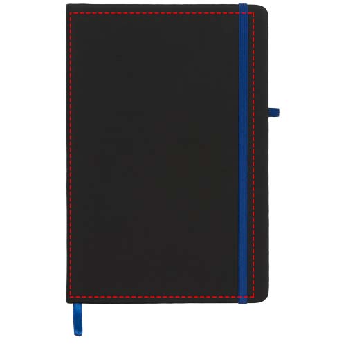 Het Noir-notitieboek heeft een harde PU omslag wat zacht aanvoelt voor een tastbare afwerking. Elk notitieboek heeft een gekleurd sluitbandje, penlus en bladwijzer. Het notitieboek bevat 96 bladen (70g/m2) crèmekleurig lijntjespapier.