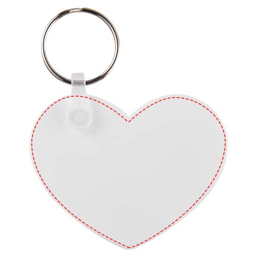 Witte hartvormige sleutelhanger met metalen gesplitste sleutelring. De metalen lusring biedt een vlak profiel dat ideaal is voor de post.