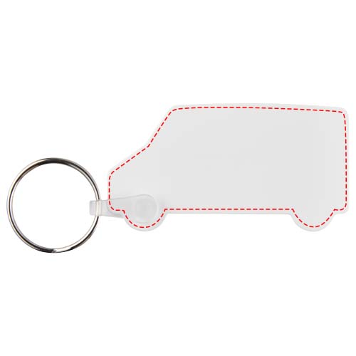 Witte busvormige sleutelhanger met metalen gesplitste sleutelring. De metalen lusring biedt een vlak profiel dat ideaal is voor de post.