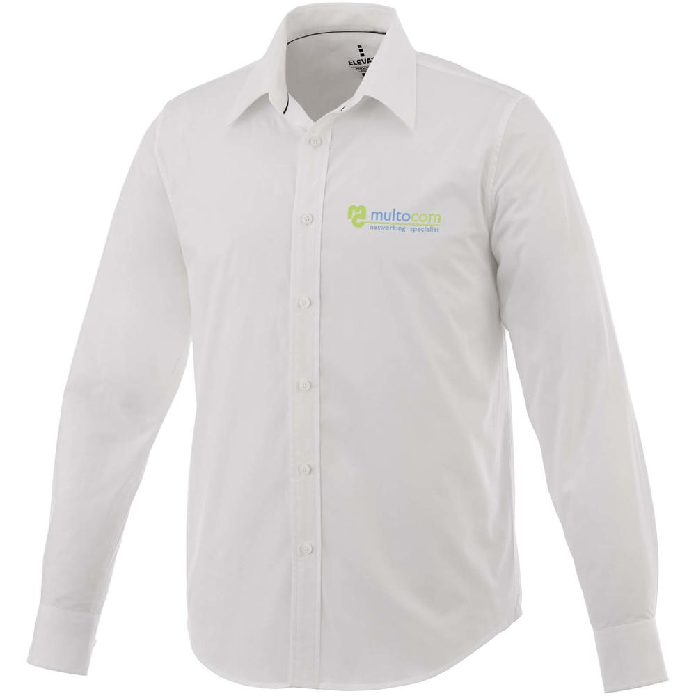 Het Hamell heren stretch overhemd met lange mouwen - een ideale combinatie van stijl en comfort. Dit geweven overhemd heeft een lichtgewicht poplin stof van 97% katoen en 3% elastaan. Popeline stof staat bekend om zijn strakke weving, die zorgt voor uitzonderlijke duurzaamheid terwijl het een zachte en gladde textuur tegen de huid behoudt. Dit betekent dat het Hamell overhemd niet alleen comfortabel is om te dragen, maar ook bestand is tegen alledaagse slijtage, zodat je er lang gebruik van kunt maken. De toegevoegde stretch zorgt voor ultieme bewegingsvrijheid, waardoor je de hele dag door verzekerd bent van optimaal comfort. De verborgen button-down kraag voegt raffinement toe met behoud van een nette look.