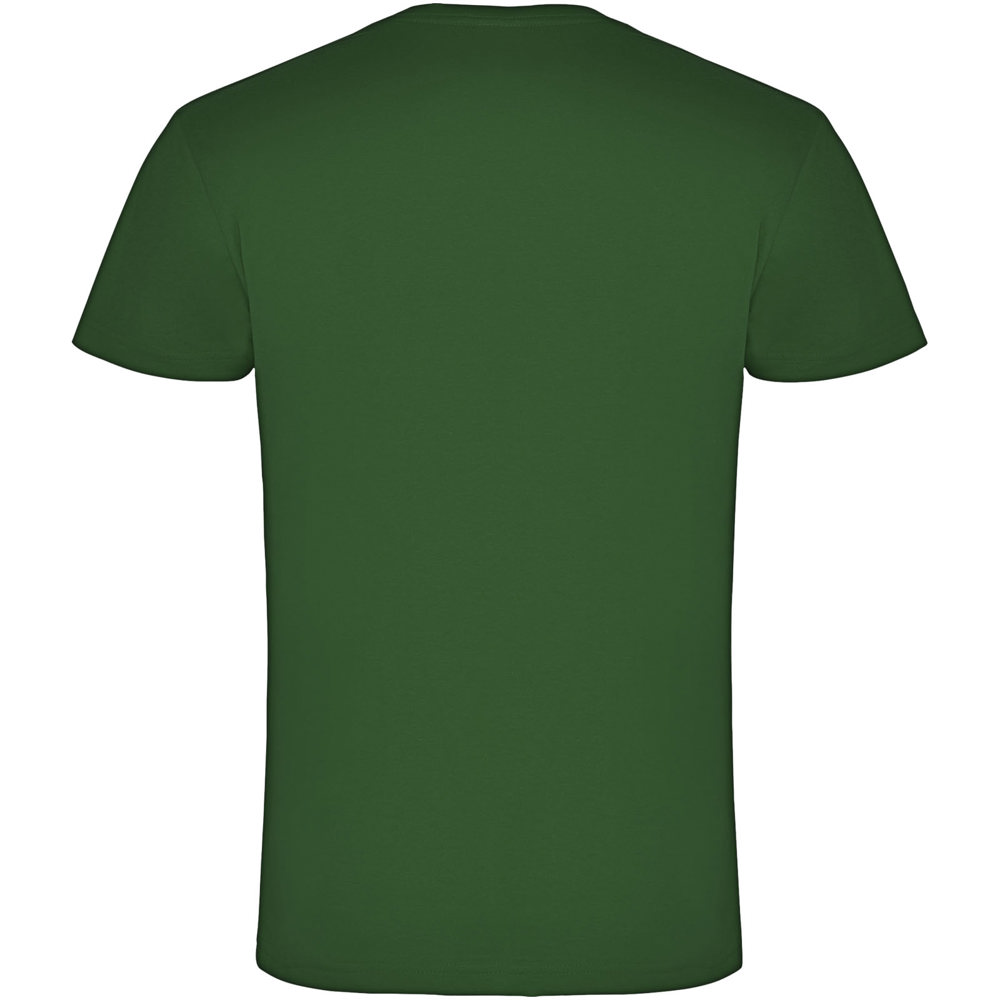 Buisvormig T-shirt met korte mouwen en tweelaags V-hals. Versterkte bedekte naden in kraag en schouders. Verwijderbaar etiket. Het model is 190 cm en draagt maat L.