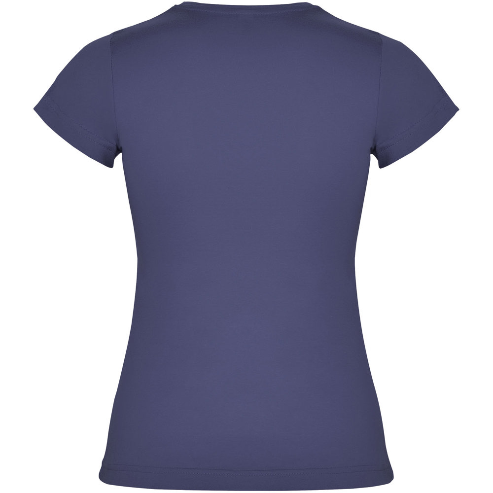 Getailleerd T-shirt met korte mouwen. 1x1 dubbellaags geribde ronde hals en bedekte naden van schouder tot schouder. Zijnaden. T-shirt verkrijgbaar in 21 kleuren. Verwijderbaar etiket. Het model is 168 cm en draagt maat S.
