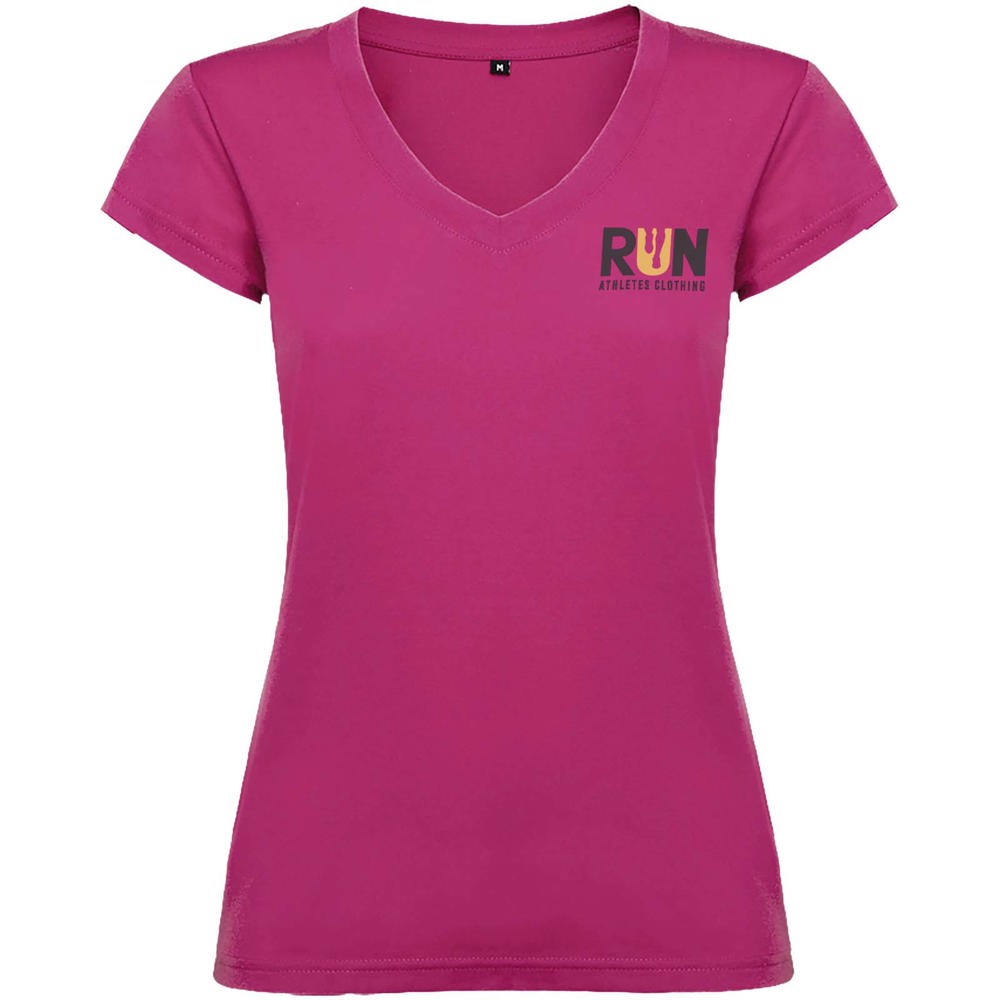 T-shirt met korte mouwen en V-hals voor dames, met 1x1 geribbelde afwerkingen. Slim-fit met zijnaden. Verwijderbaar etiket. Het model is 174 cm en draagt maat S.
