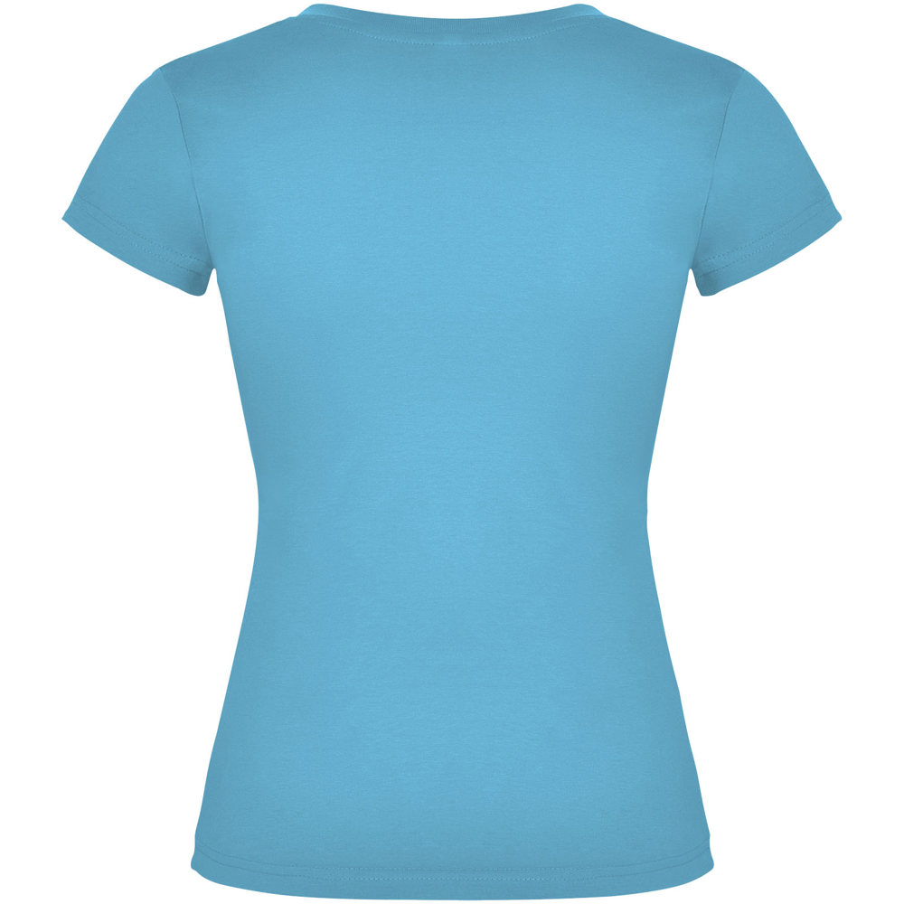 T-shirt met korte mouwen en V-hals voor dames, met 1x1 geribbelde afwerkingen. Slim-fit met zijnaden. Verwijderbaar etiket. Het model is 174 cm en draagt maat S.