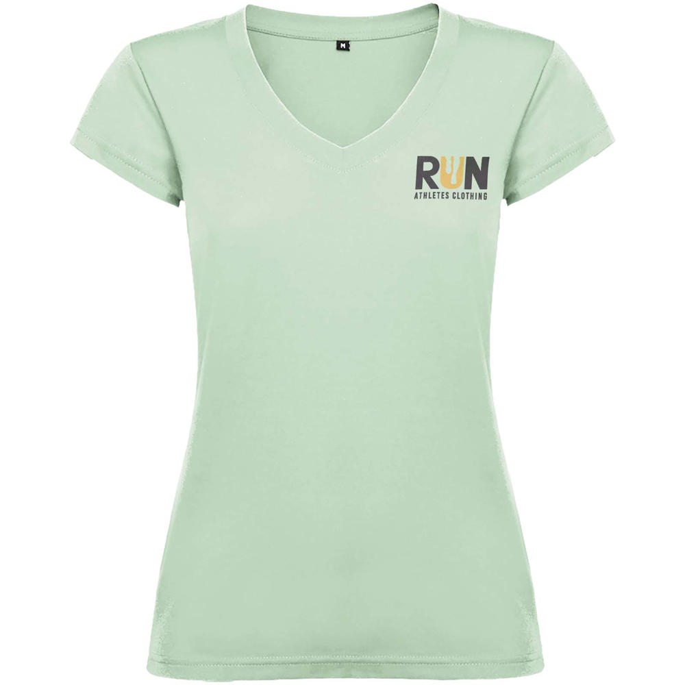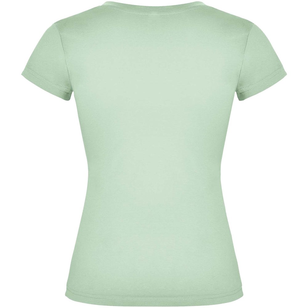 T-shirt met korte mouwen en V-hals voor dames, met 1x1 geribbelde afwerkingen. Slim-fit met zijnaden. Verwijderbaar etiket. Het model is 174 cm en draagt maat S.