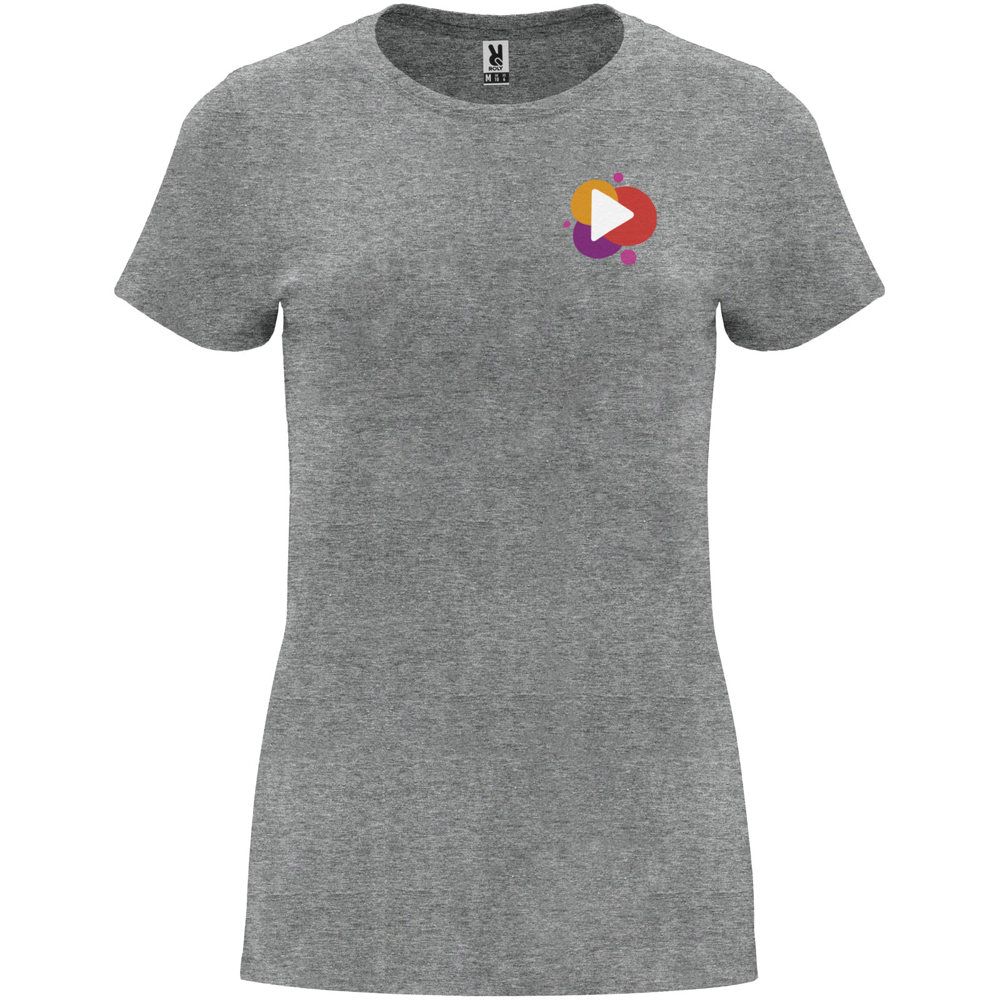 Getailleerd T-shirt met korte mouwen voor dames. 1x1 geribde ronde hals. Versterkte bedekte naden in de kraag. Verwijderbaar etiket.