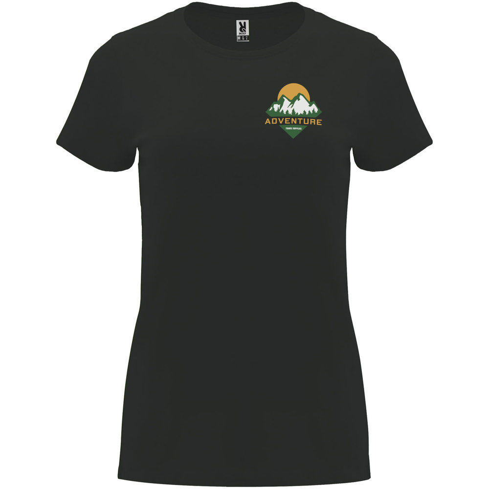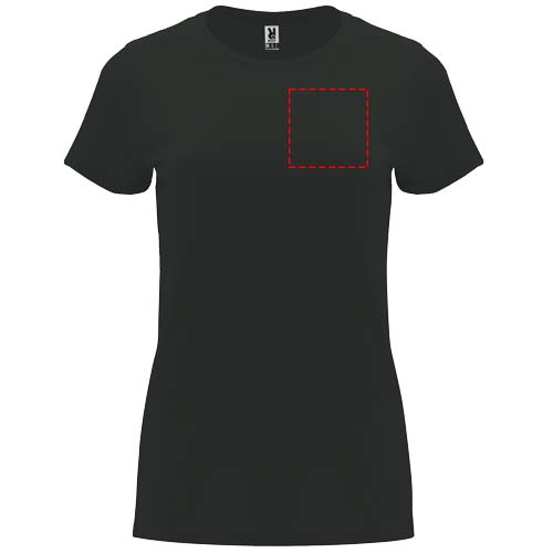 Getailleerd T-shirt met korte mouwen voor dames. 1x1 geribde ronde hals. Versterkte bedekte naden in de kraag. Verwijderbaar etiket.