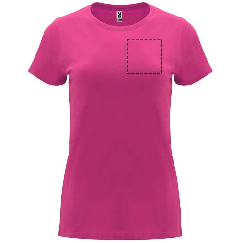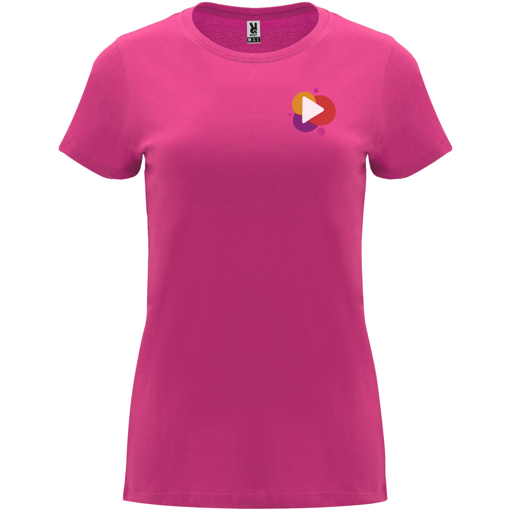 Getailleerd T-shirt met korte mouwen voor dames. 1x1 geribde ronde hals. Versterkte bedekte naden in de kraag. Verwijderbaar etiket.