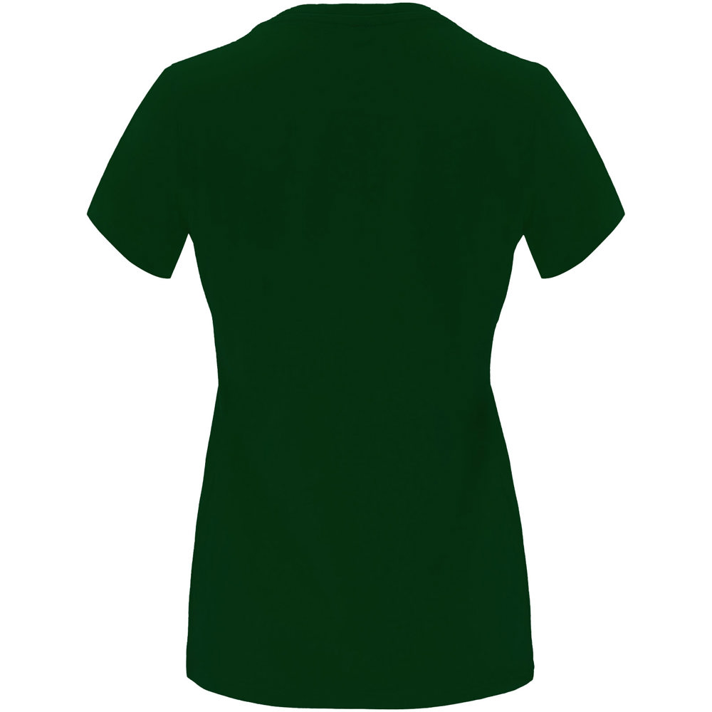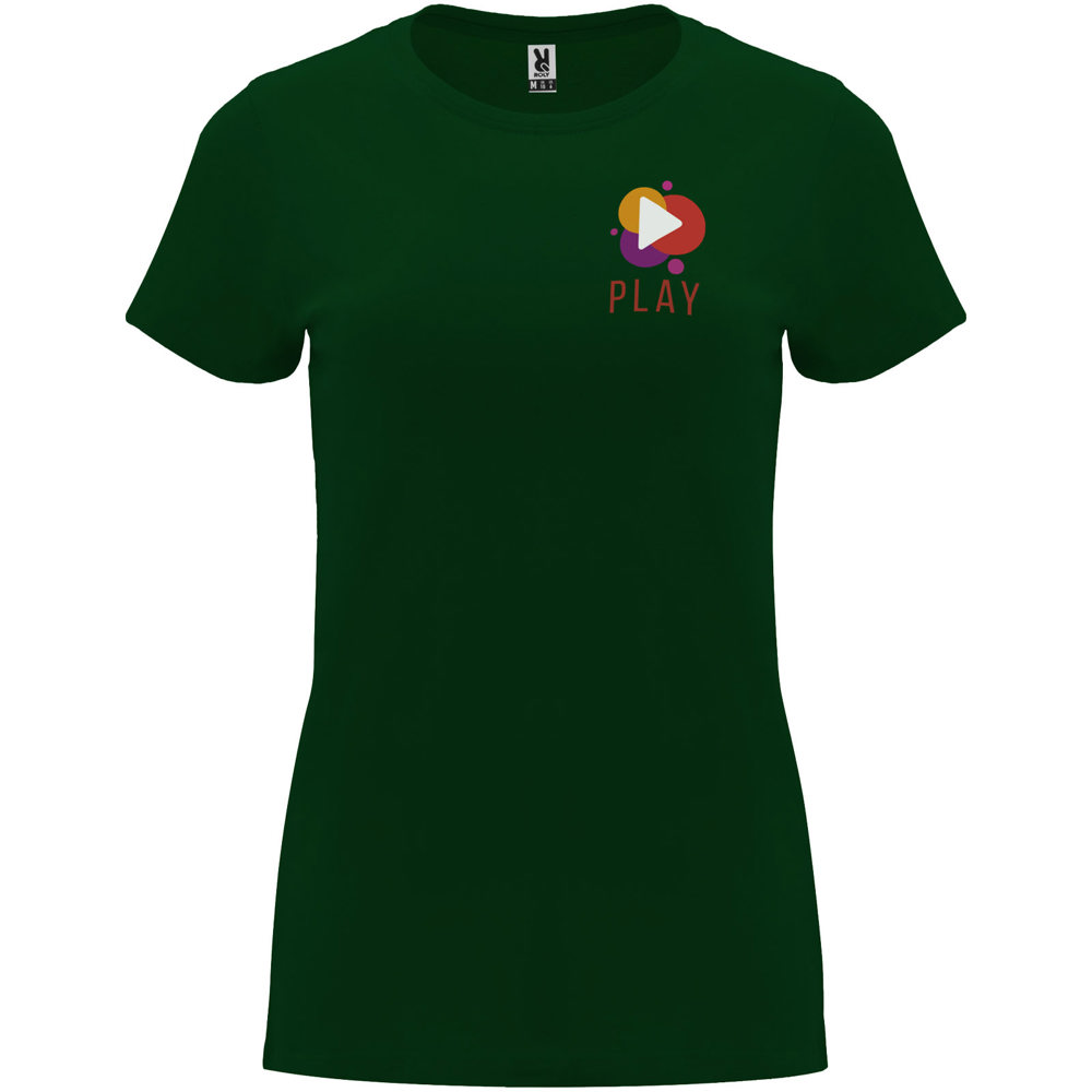 Getailleerd T-shirt met korte mouwen voor dames. 1x1 geribde ronde hals. Versterkte bedekte naden in de kraag. Verwijderbaar etiket.