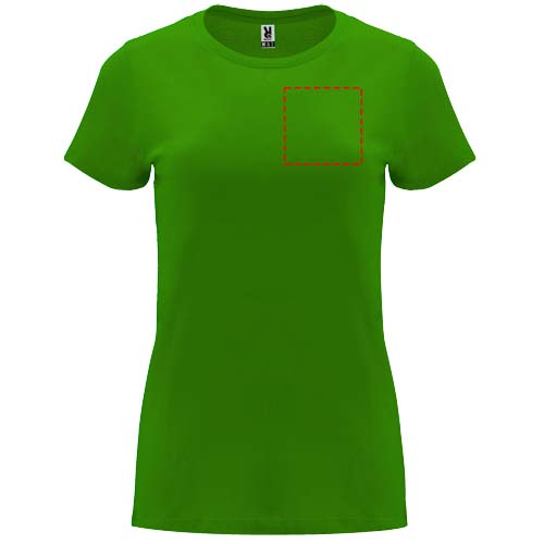 Getailleerd T-shirt met korte mouwen voor dames. 1x1 geribde ronde hals. Versterkte bedekte naden in de kraag. Verwijderbaar etiket.