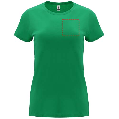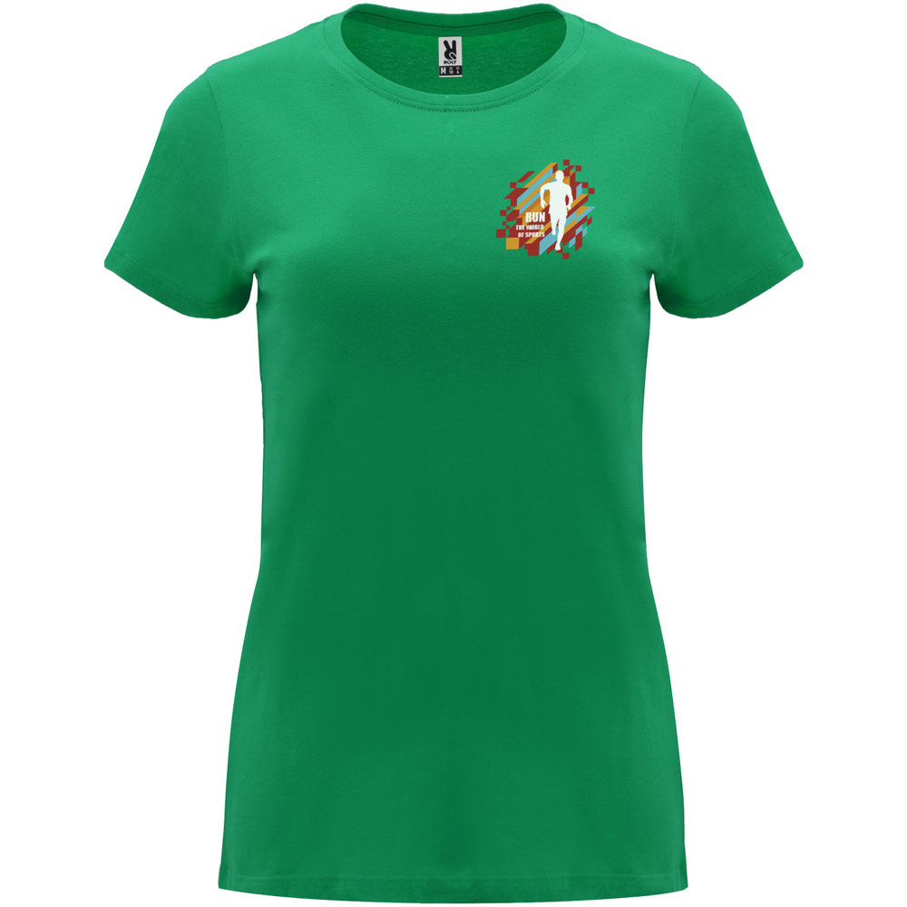 Getailleerd T-shirt met korte mouwen voor dames. 1x1 geribde ronde hals. Versterkte bedekte naden in de kraag. Verwijderbaar etiket.