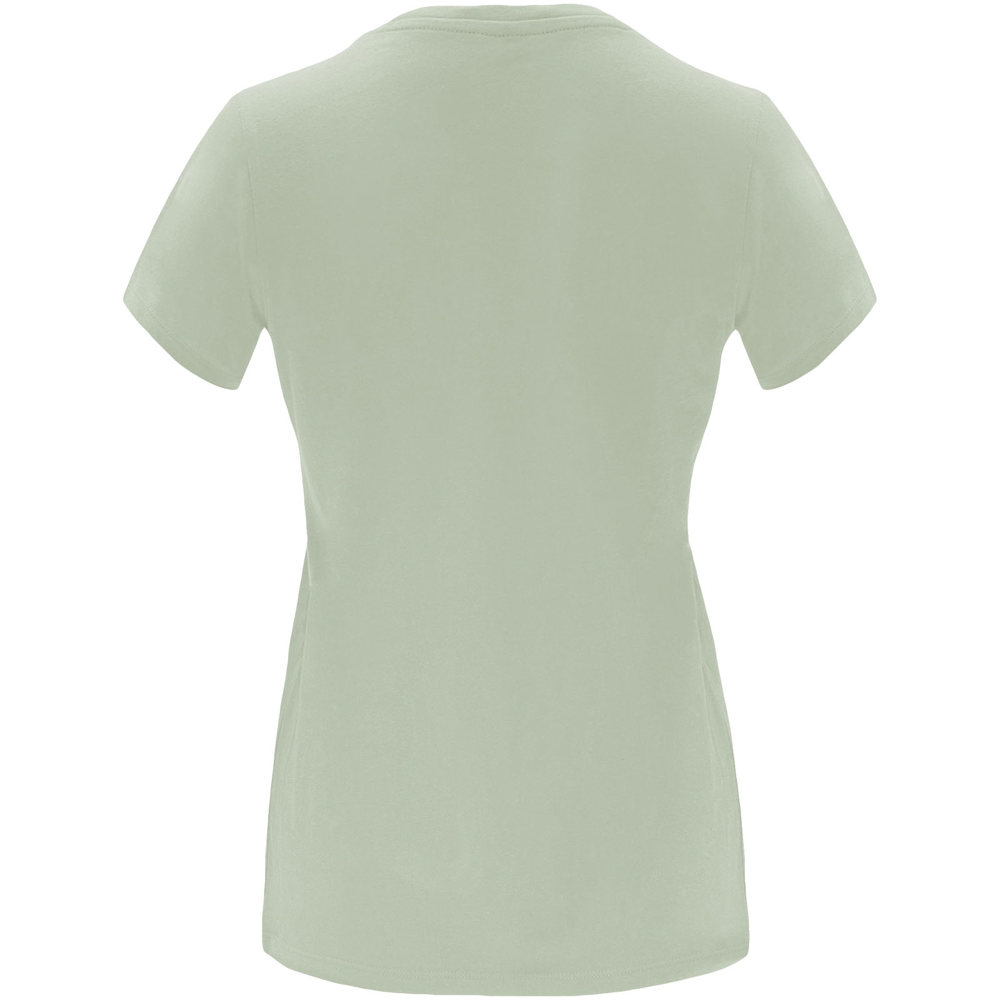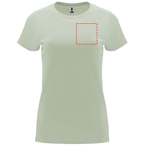 Getailleerd T-shirt met korte mouwen voor dames. 1x1 geribde ronde hals. Versterkte bedekte naden in de kraag. Verwijderbaar etiket.