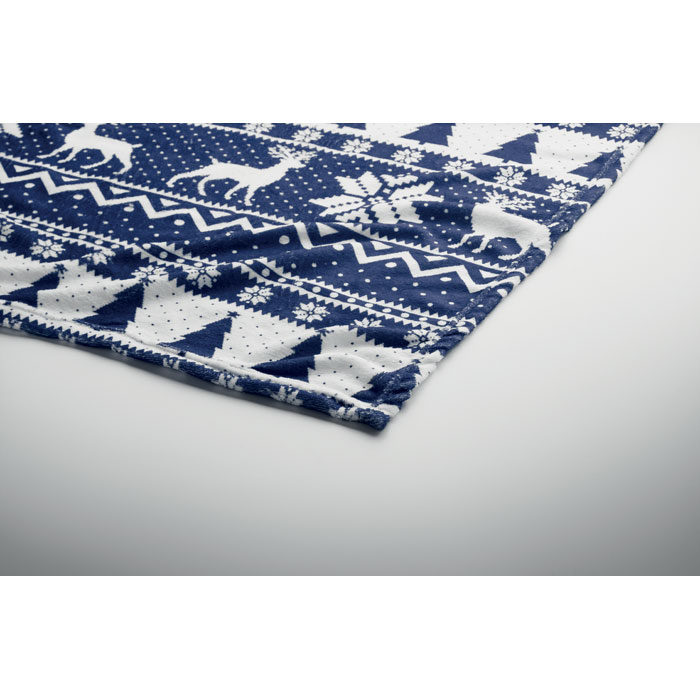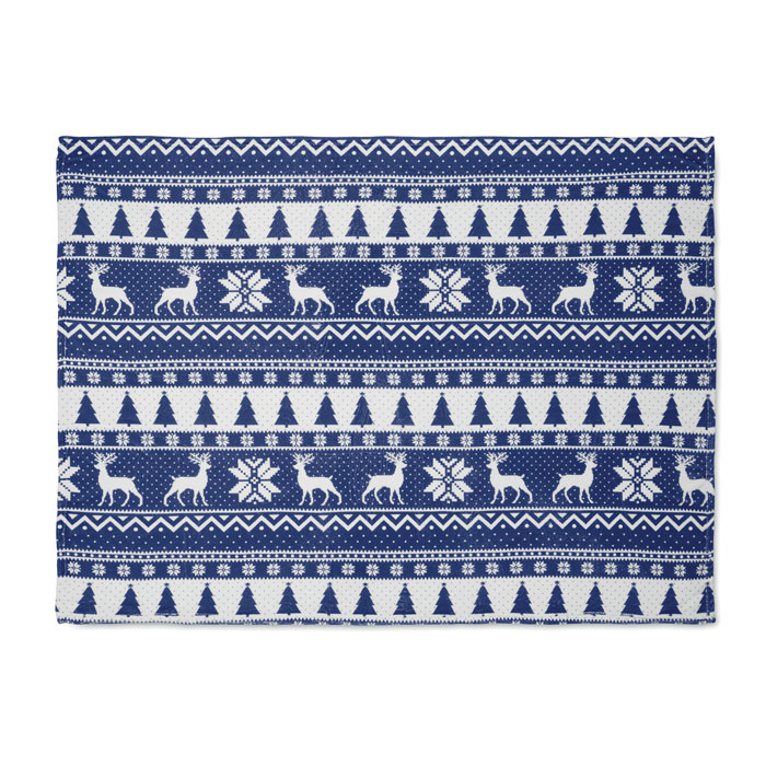 190 gr/m² RPET koraal fleece deken met winterpatroon. Verpakt in lint en bedrukbare kaart.