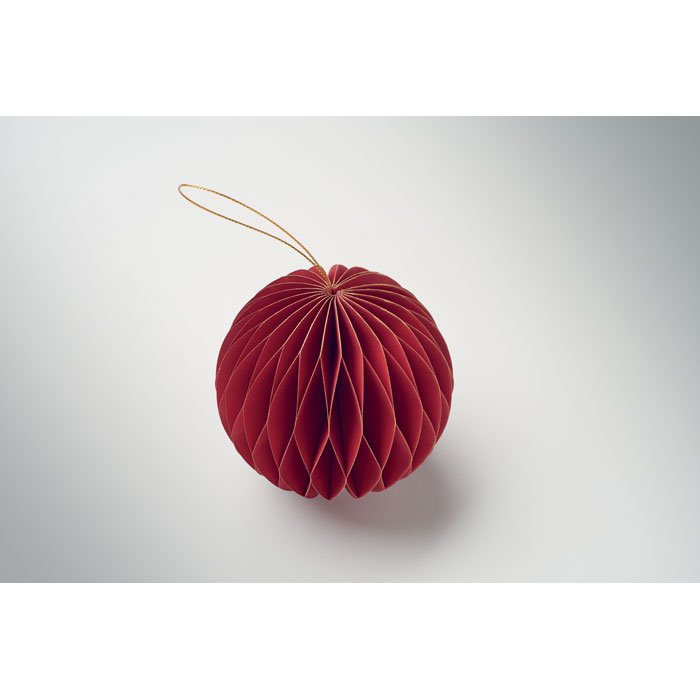 Vouwbare papieren kerstbalhanger met magneetsluiting.