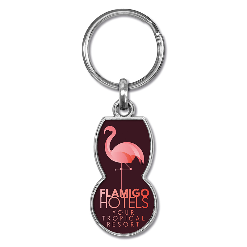 Sleutelhanger met winkelwagenmunt van gerecycled aluminium.