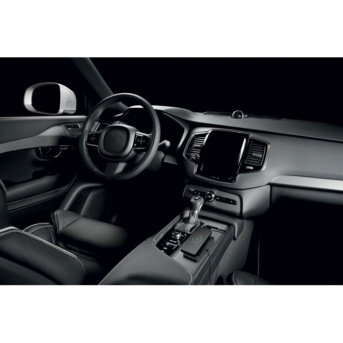 Draadloze oplader voor in de auto 15W, antislimat van PVC. Verstelbaar, randen kunnen op maat worden gesneden. Geïntegreerde USB A-kabel, lengte 120cm.