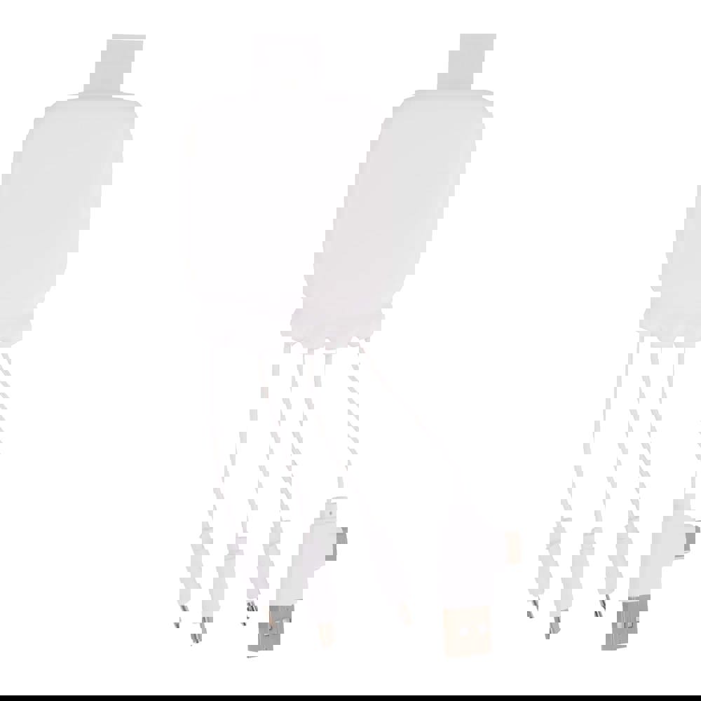Magnetisch oplaadstation in ABS. 3 draadloze oplaadpunten. 1 x 15W, 1 x 5W voor TWS en 1 Apple watch oplader (3W). 2 Type-C & 2 USB-A HUBS. Geïntegreerde kabelingang: connector van Type-C naar USB-A.