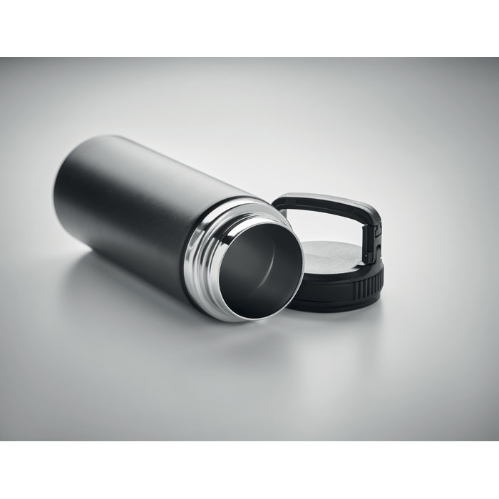 Dubbelwandige roestvrijstalen vacuüm geïsoleerde fles met haakhanger op deksel. Capaciteit: 500 ml.