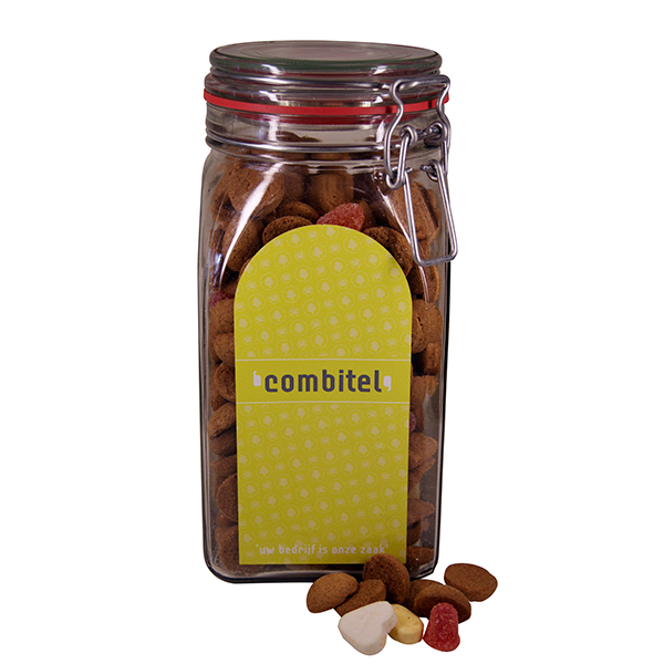 Grote glazen pot afgesloten met een weckpotsluiting. (andere vulling mogelijk op aanvraag)