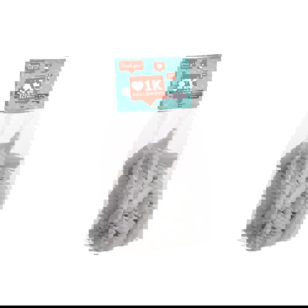 Transparant blokzakje met full colour bedrukt kopkaartje, gevuld met ca. 150 gram Winegums