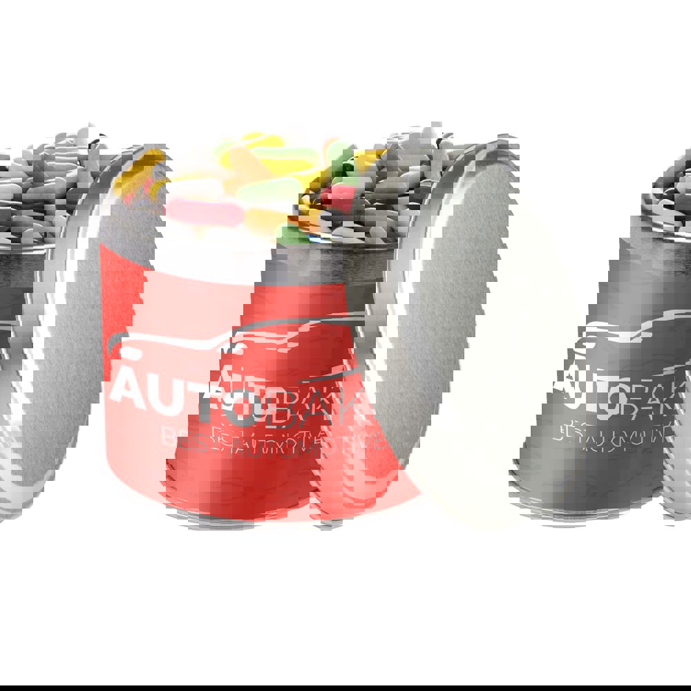 Transparant blokzakje met full colour bedrukt kopkaartje, gevuld met ca. 150 gram Winegums